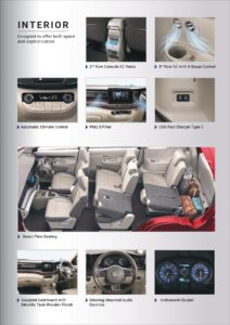 - Family-Friendly Design: The cabin is designed for Indian families. It offers flexible seating—the third row can be folded down to provide ample boot space (up to 803 liters) for luggage, or popped up to accommodate extra passengers. Features like rear AC vents for all three rows and comfortable seating (with adjustable headrests) ensure that every passenger, even in the third row, has a bearable journey, especially during long summer drives.
