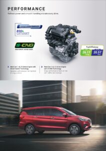- The Unstoppable S-CNG Variant: The factory-fitted S-CNG option is a game-changer. Offering an exceptional mileage of around 26.1 km/kg, the CNG Ertiga offers the lowest running costs of almost any 7-seater vehicle. For fleet operators, the marginal cost of travel drops drastically, ensuring a quick return on investment. This dual-fuel capability is a masterstroke in meeting the market’s demand for both performance and frugality.
